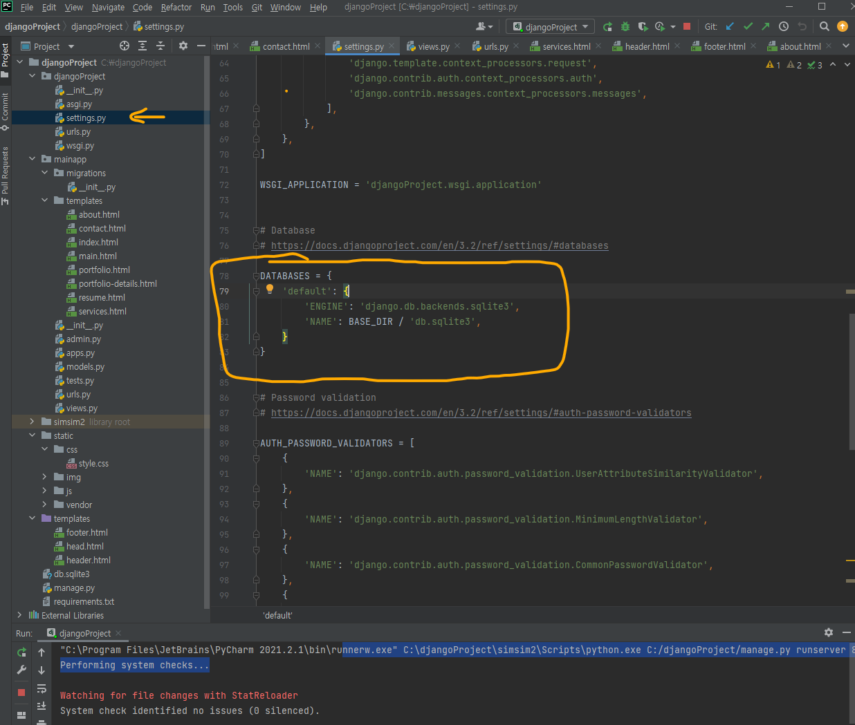 NAME = 본인이 만든 데이터베이스 이름입니다 저는 방금 djnago-portfolio로 생성했죠