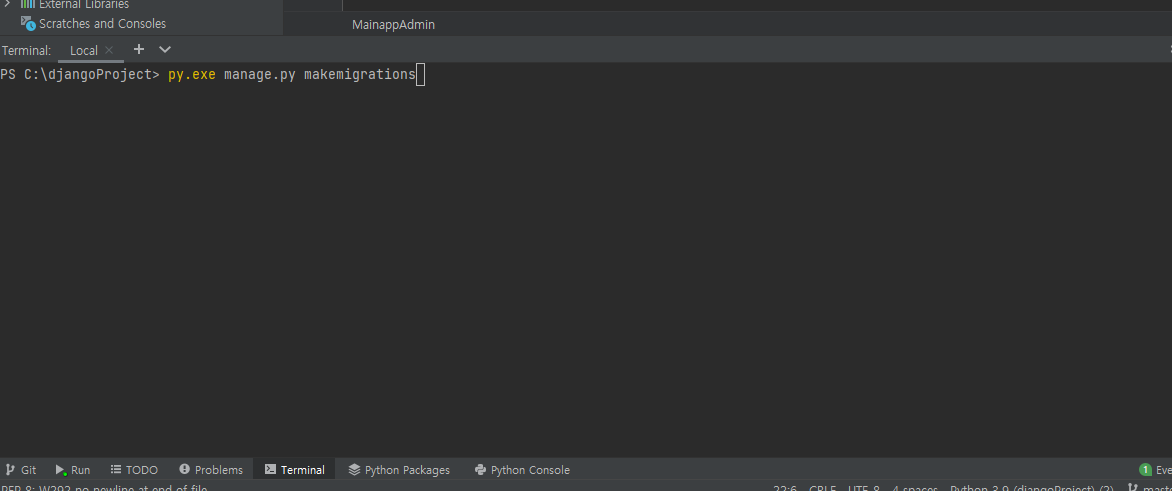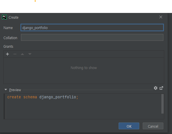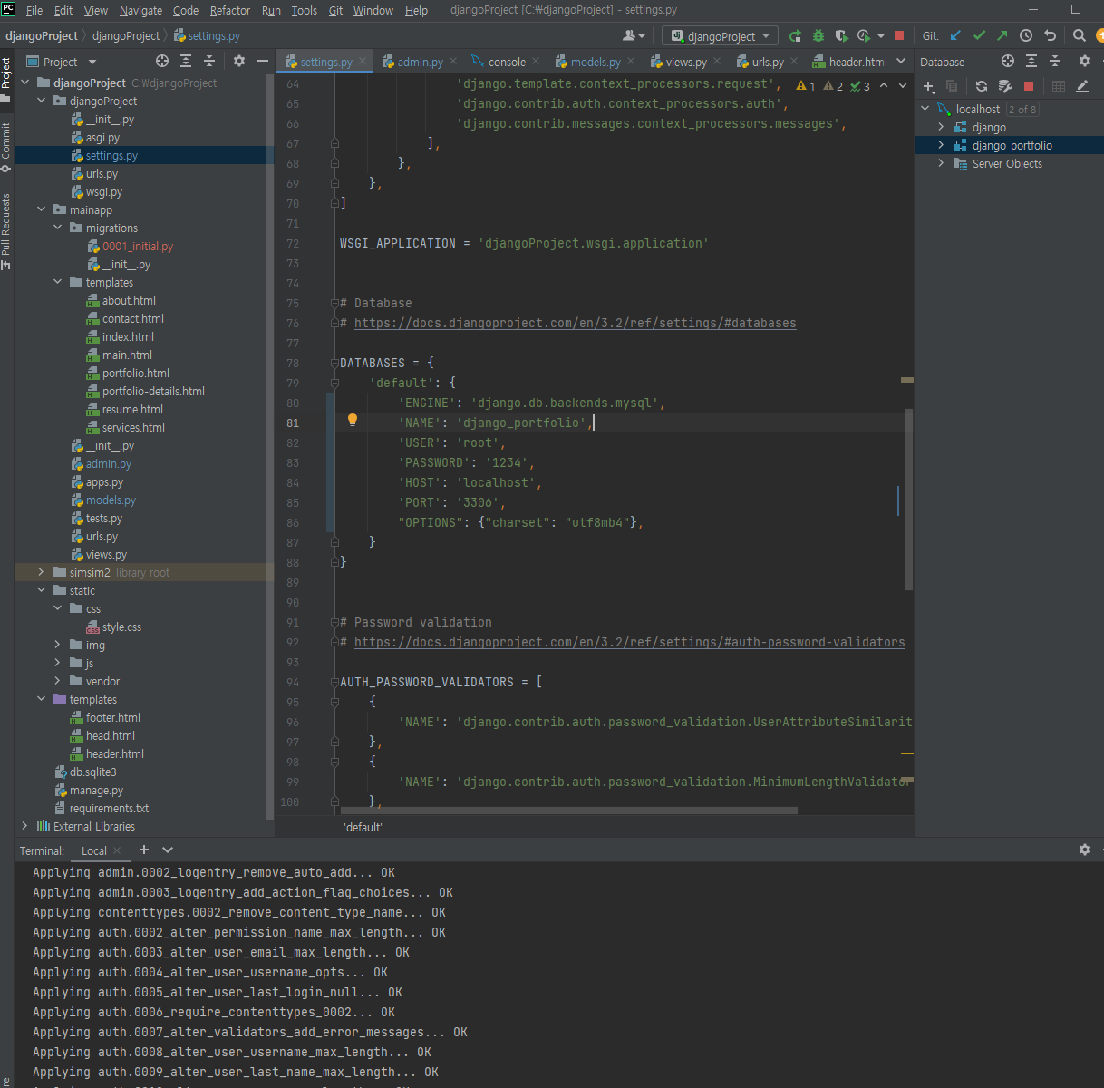 Mysql눌러 주시고 django-portfolio데이터베이스를 만들어줄게요