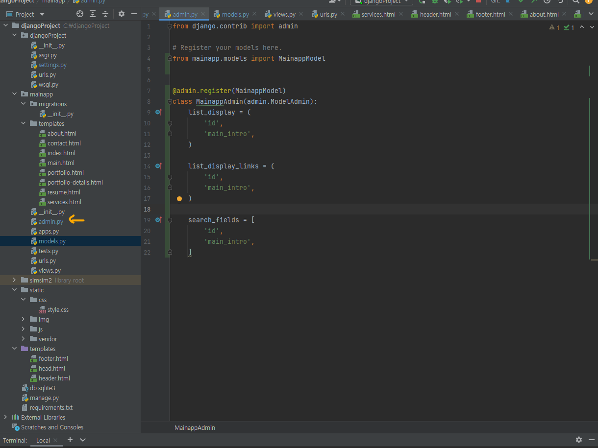 오늘은 myql 연동하여 간단히 장고 어드민 사이트에서 데이터 추가하여 꺼내오는법 다룰게요